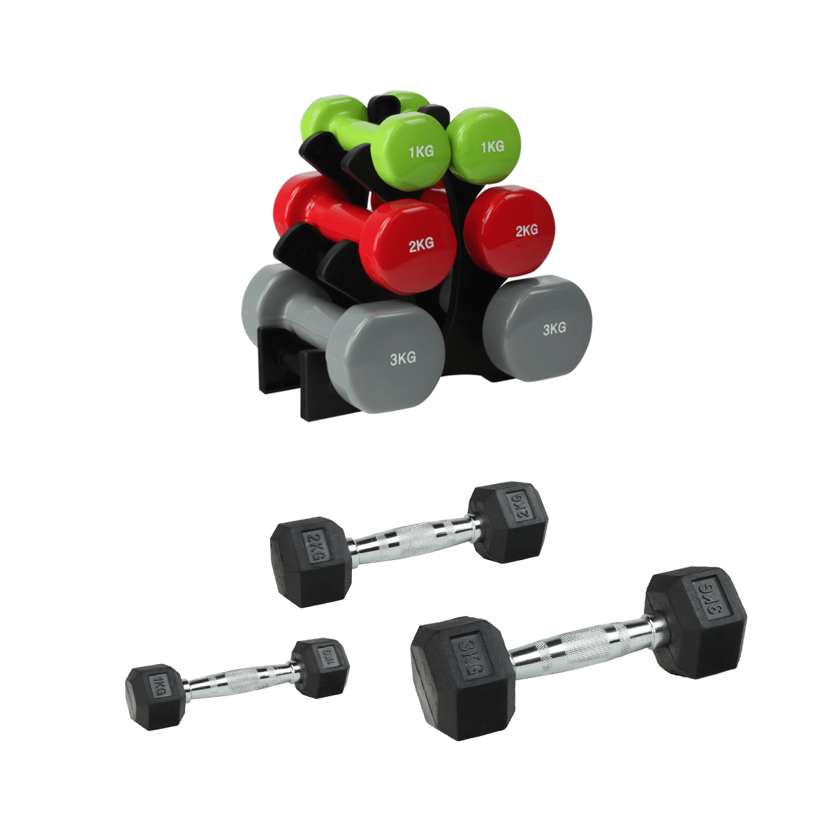 Odin Stativ til 3 Sæt Håndvægte Inkl Hex Håndvægte (12kg)